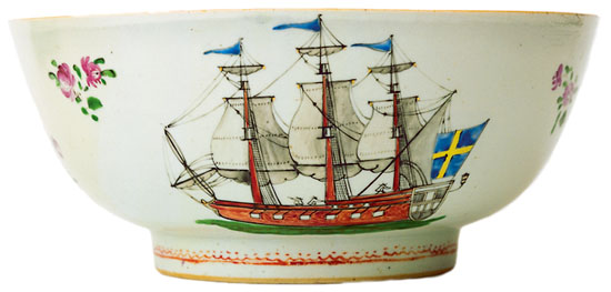 瑞典西方古董公司收藏的清朝乾隆年间粉彩描金帆船纹大碗