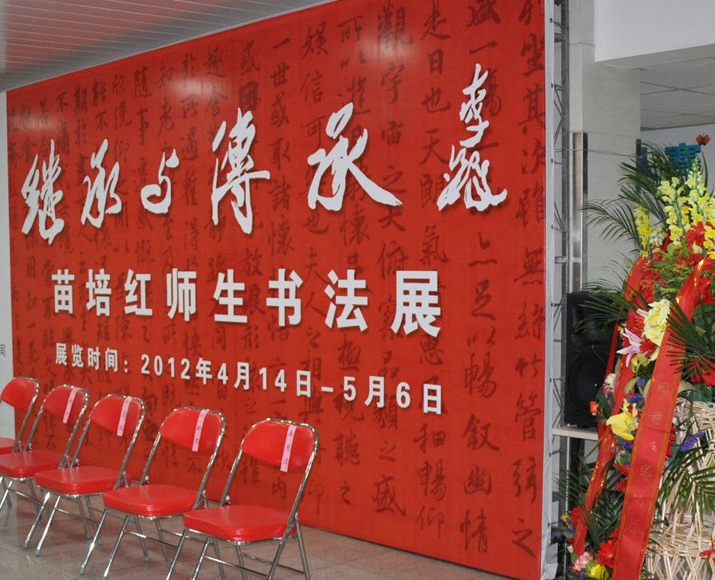 由中国书协、中国人民解放军书法创作院主办的“继承与创新——苗培红师生书法展”4月14日在京开幕。迟浩田以及周坤仁、张道诚、周可仁、杨定宇、康成元、何林忠、李俊琏等领导,李铎、张飙、苏士澍、王家新等书法界人士出席开幕式并参观展览。