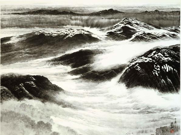 许钦松是当今岭南画坛的领军人物,更是中国山水画革新的思想者和实践者。数十年来,他倾情中国山水画创作,面貌新颖而精神高迈的山水画作,显示出了回归自然中对传统的超越,引起业界广泛关注和影响。此次展出的许钦松历年创作的山水画作,万水千山,茫茫无际,境象极开阔,视界更宽广,既有高瞻远瞩的开阔视野,又突出脚踏实地的观感,既讲求大气象、大境界、大笔墨,又不遗余力地把握真切感受和关键细节,从而形成了风驰电掣的速度感、强烈而微妙的光影感、山体坚实浑厚的实体感和云雾流走飘洒的细润感。画家所追求的山水境界,是宇宙自然的原生态的大朴不琢之美,经由中西艺术观念的交融、中西视觉元素的综合、水墨画对版画表现力的作用,在广阔无垠的山川中,这种大化之思与大美之境,在继承传统笔墨的同时,被赋予了新的时代精神和现代审美经验。