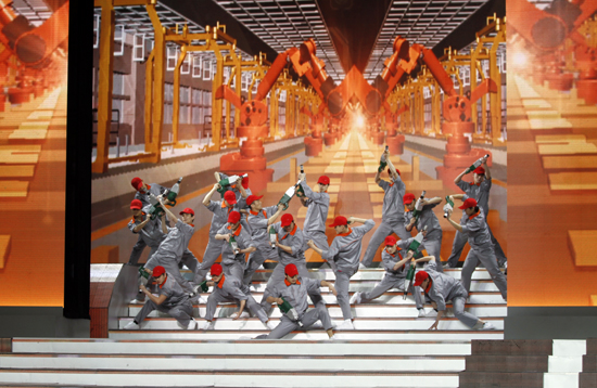 4月25日,由全国总工会、kaiyun电子 、中央文明办和中央电视台联合举办的《阳光路上》——2012年“五一”国际劳动节大型文艺晚会暨第三届中国职工艺术节开幕式在北京工人体育馆隆重举行。图为中国铁路文工团舞蹈队带来舞蹈组合《踏歌行》。中国文艺网 刘刈 摄