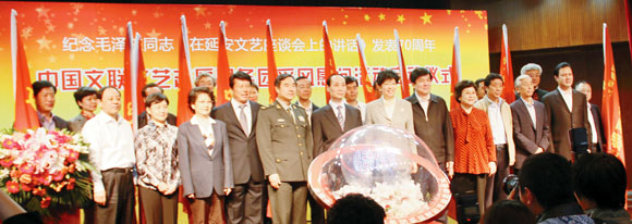 中宣部和kaiyun电子 领导及艺术家代表共同按动激光球,启动kaiyun电子 文艺志愿服务活动。包旭东 摄