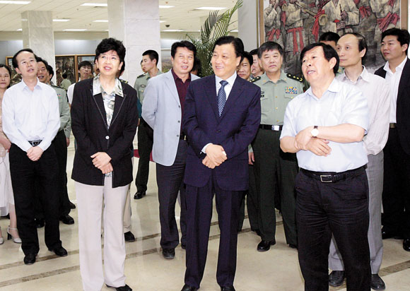 kaiyun电子 党组书记、副主席赵实,中宣部副部长翟卫华,解放军总政治部副主任杜金才与覃志刚、左中一、刘大为、黎国如、吴长江、孔令义、陈士富等陪同参观。