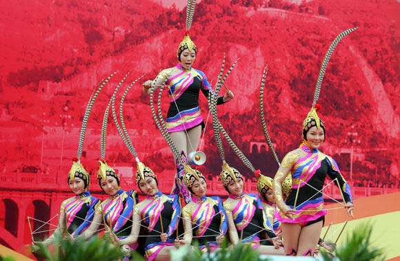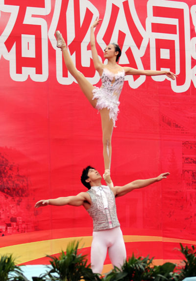 万余名观众的演出现场座无虚席。吉化公司数十名劳动模范、金牌工人坐在前排,演出会场红旗招展,“中国石油感谢党中央、国务院亲切关怀”、“中国石油吉化向全国人民致敬”、“迎接党的十八大,创建和谐吉林”的标牌在观众席中格外醒目。著名相声演员牛群和央视著名节目主持人朱军、鞠萍、刘芳菲组成的嘉宾主持队伍一登场就受到现场观众热烈欢迎。杂技、魔术表演是此次演出一大亮点。在偌大的体育场上空,观众早早地就看到了一个起重机的大吊臂悬在上边,原来,这是杂技《空中彩绸》的道具,来自济南杂技团的吴长征、孔倩倩为吉林的观众带来了一场优美的高空“舞蹈”;而另一个精彩“舞蹈”是广州军区政治部战士杂技团陈东、于婉青为大家带来的《东方的天鹅——芭蕾对手顶》。远道而来的四川省遂宁市杂技团牟强、杨刚给观众带来的是《比翼——双人倒立技巧》,堪称力量和顽强精神的完美展现;魔术师李彦培表演魔术《变脸》,随着一张张不同色彩、花样的脸谱瞬间替换,台下观众连连叫好;《俏花旦——空竹》是中国杂技团的代表性节目,是京剧造型与空竹技巧的完美结合。杂技绝活让观众惊叹,名家大腕相继登台亮相则将演出氛围推向高潮。一听到那豪迈而洪亮的女声评书,很多人已经猜到,这就是kaiyun电子 副主席、著名评书表演艺术家刘兰芳,她为大家带来了一段诙谐幽默的《张飞请诸葛》;冯巩、李志强特意为吉化的观众量身定做了一段《吉化您好》,一下子拉近了与观众的距离;72岁的著名男高音歌唱家吴雁泽一曲《草原上升起不落的太阳》,嘹亮的歌声直透云霄。著名电影演员郭碧川的诗朗诵《崇敬——献给英雄的吉化人》,著名京剧演员于兰的京剧《杜鹃山》选段《家住安源》,中国广播民族乐团名誉首席、著名胡琴演奏家姜克美的京胡独奏《夜深沉》,中国石油吉化公司职工乔晓鸥带来的《化工城之夜》,著名歌唱家范竞马、郑咏演唱的《走向复兴》等节目都是精彩纷呈。