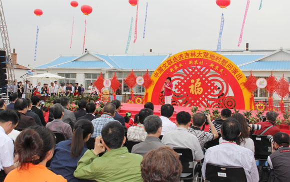 授牌仪式后,kaiyun电子 文艺志愿服务团小分队驱车近30公里,赶往吉林市大荒地村,参观这里的社会主义新农村建设,并为乡亲们带来了一场精彩的演出。到村口时,艺术家们被一块块水田吸引,水田里,机械化的插秧机正在作业。进入大荒地村,赵实饶有兴趣地参观了村里的农家书屋,并走进65岁的当地农民乔明儒家中,问候老人的生活情况。艺术家们了解到,2011年大荒地村农民人均年收入已达到18000元,全村年生产总值实现10亿元,成为远近闻名的富裕村。看到一排排亮丽的小别墅,相声演员牛群说,这里的发展远远超出了他的想象。演出就在居民的住宅楼、活动广场与菜地之间临时搭建的舞台上举行。艺术家们的表演受到了热烈欢迎,老乡们说:“和电视上看到的就是不一样,希望艺术家们能多来农村演一演,走一走,看一看。”