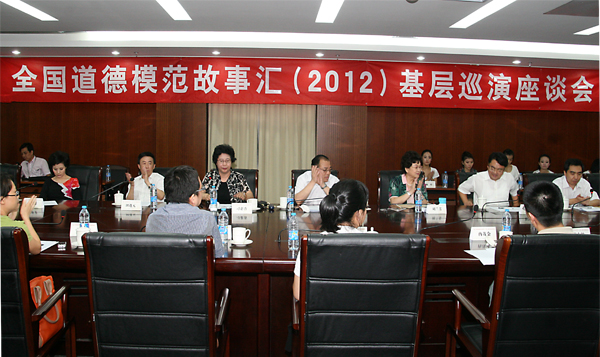 7月30日在北京举行“全国道德模范故事汇(2012)汇报演出kaiyun电子 专场”,作为此次巡演活动的收官之作。演出结束后,kaiyun电子 相关部门领导、中国曲协领导、参加专场演出的全体演员、道德模范、节目编创人员、观众代表和媒体记者在中国文艺家之家举行“全国道德模范故事汇(2012)基层巡演座谈会”,对此次巡演活动进行全方位的总结梳理,交流体会,为进一步推动全国道德模范故事汇向纵深发展、提升活动的品味和层次,争取使活动推向新台阶进行研讨和交流。以下人员出席会议并发言: