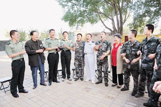 7月28日,“百花放映”活动来到了这里。早早地,营地的空场便支起白色幕布,移动数字放映机也准备就绪,小马扎整齐地摆放在场地正中,一声集合哨响,边防营的战士们列队进入迅速坐好。当晚,放映电影《飞天》。与以往在活动室里放DVD看电影不同,露天放映的方式令战士们新奇又开心,“就像回到了小时候,在村里的晒谷场上看电影”。入伍3年的战士刘哲和许多战士一样,还拿来了平时写日记用的笔记本,因为《飞天》中的演员刘之冰、岳红也来到了现场,他想得到他们的签名。