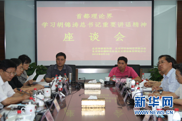 新华网北京8月3日电(记者 姜春媛)首都理论界学习胡锦涛总书记重要讲话精神座谈会3日上午在京举行。