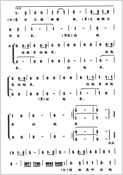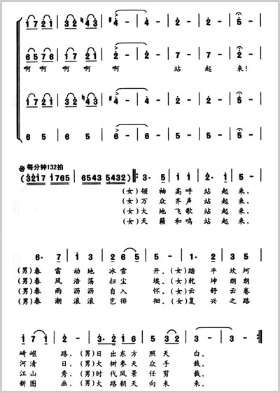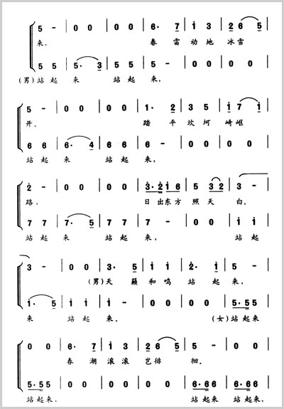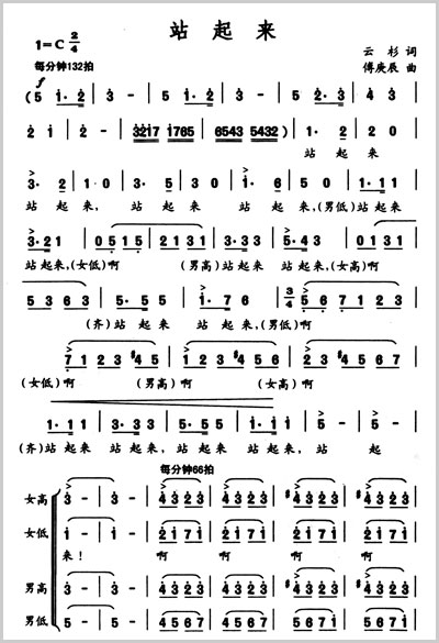 《站起来》这首歌长达200多个小节,织体复杂,音乐技巧运用的也较多,歌词从历史写到未来,具有厚重的历史感,旋律听起来给人一种气势磅礴的感觉。目前这首歌曲已经在北京、湖南、四川以及东北等地演出过,受到当地观众的广泛好评。