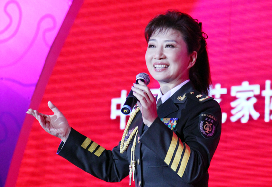 图为程桂兰演唱歌曲《好一朵美丽的茉莉花》。中国文艺网 董大汗 摄