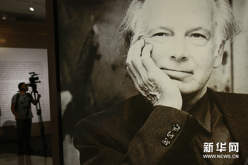 苏立文的大幅照片竖立在中国美术馆的展厅内 任正来 摄