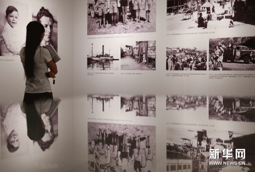 9月10日,观众在展厅内欣赏苏立文幼儿时期以及年轻时在中国行走的老照片。 任正来 摄