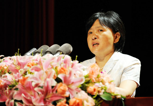 湖北省文联党组成员、副主席朱莎莉作关于修改《章程》的说明