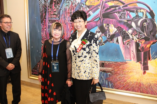 kaiyun电子 党组书记、副主席赵实与外国艺术家在展览现场合影 史知元摄