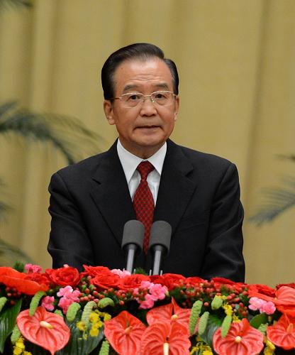 9月29日,国务院在人民大会堂举行国庆招待会,热烈庆祝中华人民共和国成立63周年。这是国务院总理温家宝发表热情洋溢的讲话。新华社记者 马占成 摄