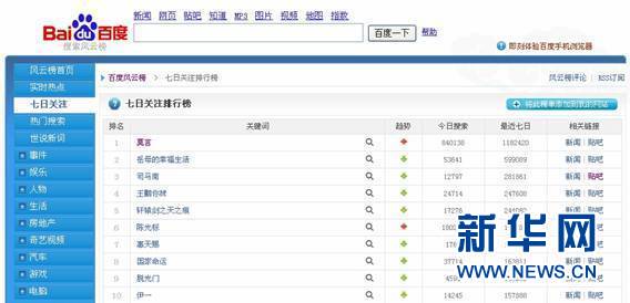 据百度搜索指数显示,“莫言”高居搜索风云榜“七日关注”榜首。