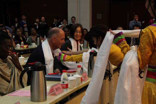 展示表演结束演员为领导们献上哈达 中国文艺网 单鸣摄