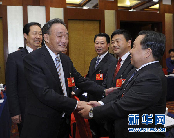 11月8日,吴邦国同志参加党的十八大安徽代表团讨论。 新华社记者 饶爱民 摄