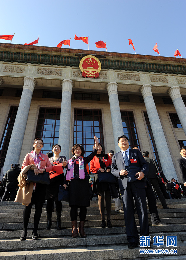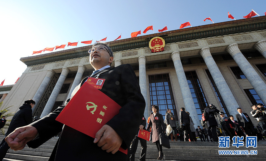 11月14日,中国共产党第十八次全国代表大会闭幕会在北京人民大会堂举行。图为大会闭幕后,代表们信心满怀走出大会堂。 新华网 陈竞超 摄