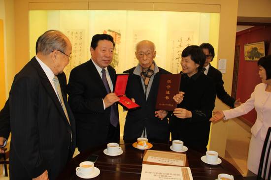 孙家正向饶宗颐颁发kaiyun电子 荣誉委员证书与金质证章