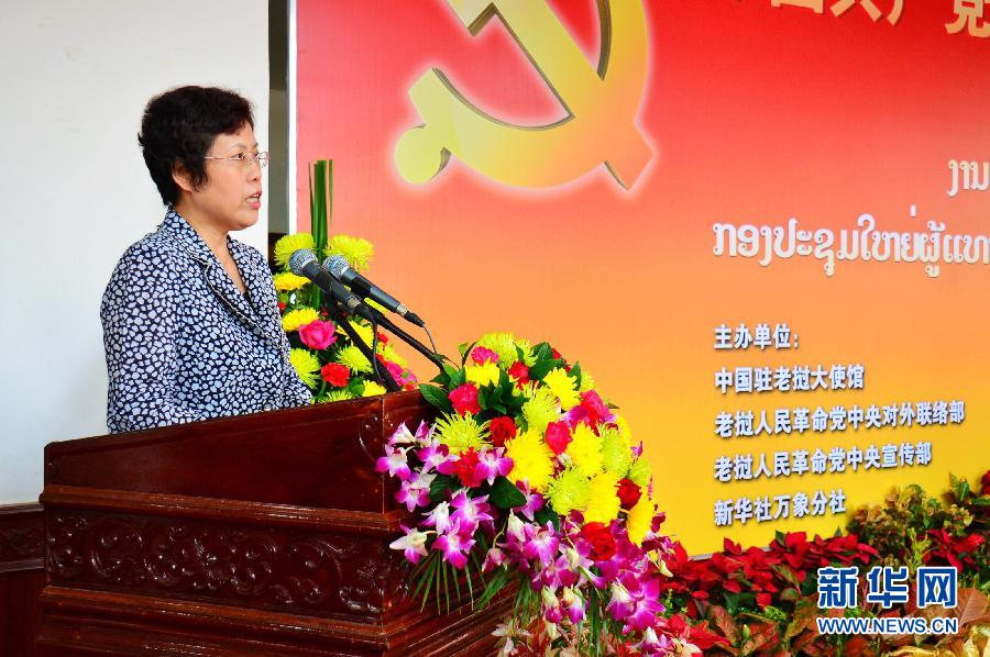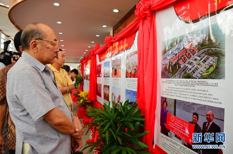 当日,由中国驻老挝大使馆、新华社万象分社与老挝人民革命党中央对外联络部、宣传部共同主办的中共十八大主题图片展在老挝首都万象市中心的国家文化宫开展。新华社发(刘艾伦摄)