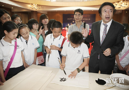2012“金台杯”中小学生书法大赛复赛评选活动在北京举行,200名中小学生参加比赛。 新华社发