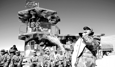 | 2010年4月,王宏伟来到海拔近5000米的西藏岗巴塔克逊边防连,吸了五袋氧气,为战士献唱了八首歌曲。(资料照片) |