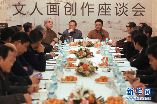 2012年12月22日,由中国艺术研究院、人民美术出版社等单位主办的2012年“文人画创作座谈会”在北京举行,20多位艺术家、收藏家、学者对文人画的创作和复兴以及文人画的精神等问题进行了深入讨论。新华社记者 吴凯翔 摄
