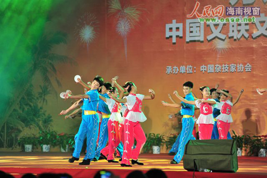 晚会在三亚市艺术团《绿色崛起》的歌舞节目中拉开序幕,接着由郁钧剑男声独唱《南海谣》《说句心里话》、黄宏节目、朱磊女子独舞《且看行云》;刘全和、刘全利合作滑稽《摄影爱好者》;李彦培魔术《变脸》;黄丽芬女声独唱《乐舞沙滩》;文昌市舞蹈《文昌盅盘舞》等节目分别上演,引起观众阵阵喝彩。