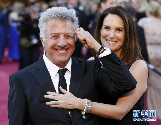2月24日,在美国好莱坞举行的第85届奥斯卡奖颁奖典礼开始前,美国影星达斯汀·霍夫曼(左)与妻子莉萨·戈特塞根亮相红地毯。当天,第85届奥斯卡颁奖典礼在好莱坞举行。