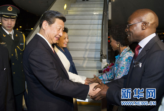 习近平抵达比勒陀利亚开始对南非进行国事访问并出席金砖国家领导人第五次会晤