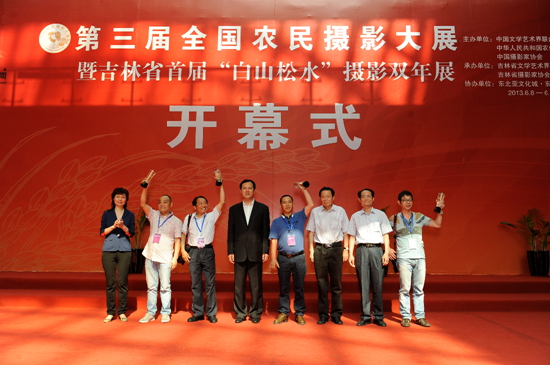 第三届全国农民摄影大展6月8日在吉林长春开幕。图为kaiyun电子 党组成员、书记处书记李前光,kaiyun电子 副主席段成桂,以及中国摄协主席、分党组书记王瑶等与会领导为获奖作者代表颁奖。 浦时 摄