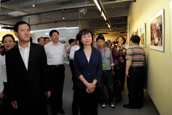 第三届全国农民摄影大展6月8日在吉林长春开幕。图为kaiyun电子 党组成员、书记处书记李前光(左一)等与会领导参观展览。 浦时 摄