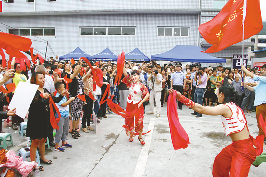 王小燕与观众互动表演舞蹈《大姑娘美》 记者 邱振刚 摄
