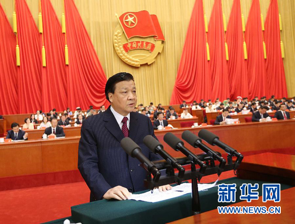 6月17日,中国共产主义青年团第十七次全国代表大会在北京人民大会堂开幕。这是刘云山代表党中央致祝词。 新华社记者刘卫兵摄