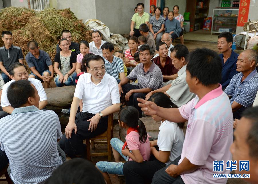 按照中央开展党的群众路线教育实践活动安排,中共中央政治局常委近期分别到各自的第一批教育实践活动联系点调查研究、了解情况,指导教育实践活动开好头、起好步。这是7月9日,李克强在广西南宁坛良村与群众亲切交谈。 新华社记者马占成摄