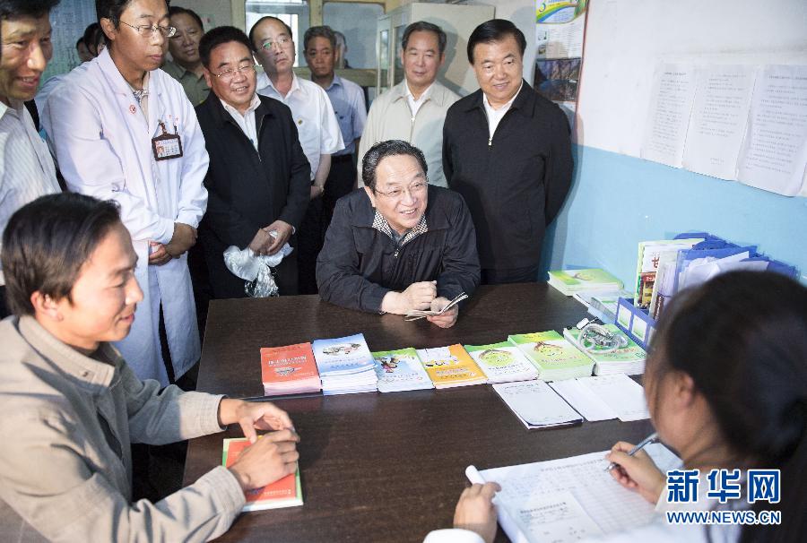 按照中央开展党的群众路线教育实践活动安排,中共中央政治局常委近期分别到各自的第一批教育实践活动联系点调查研究、了解情况,指导教育实践活动开好头、起好步。这是7月7日,俞正声在甘肃甘南藏族自治州夏河县王格尔塘镇卫生院调研。 新华社记者李学仁摄