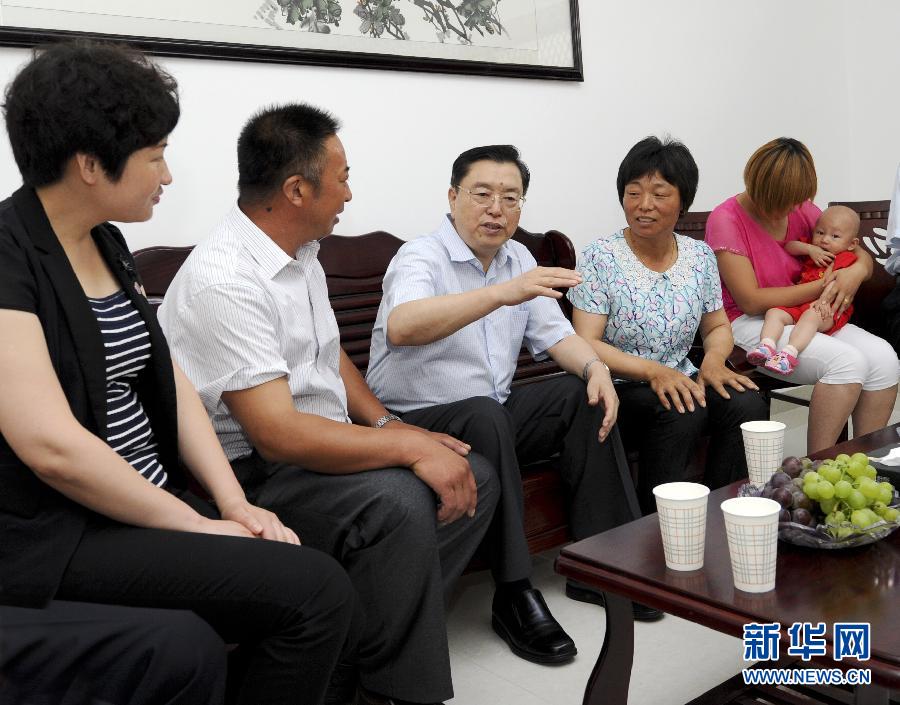 按照中央开展党的群众路线教育实践活动安排,中共中央政治局常委近期分别到各自的第一批教育实践活动联系点调查研究、了解情况,指导教育实践活动开好头、起好步。这是7月13日,张德江在江苏大丰市恒北村与村民交流。 新华社记者张铎摄