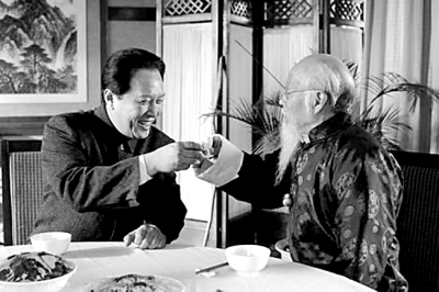 影片《毛泽东与齐白石》从独特角度再现了1950年前后两位伟人之间惺惺相惜、富有浪漫色彩的交往,毛主席儒雅的文人气质和政治领袖风度以及齐白石大艺术家仙风傲骨的气质都跃然于银幕上,充满人情味。影片突出表现了毛泽东对艺术家深厚的情感,对文化事业非同寻常的重视和呵护。同时,也从一个侧面凸显了新中国成立前后那段意义深远和跌宕起伏的历史画卷以及政治清明、人心舒畅、对未来充满希望和想象的独特历史氛围、文化景观。从某种意义上说,毛泽东与齐白石的交往不仅仅是他们两个人的交往,一个政治领袖与一个大画家的交往,也不仅仅是两个伟大人物的情感交流、灵魂对话,而是我们党在新中国成立前后与文化界、艺术界和谐关系的生动体现。这种政治家和文艺家水乳交融、毫无芥蒂的相互尊重,这种充满人文关怀的情感和友谊,是我们今天实现中国梦所需要的精神力量、情感力量。