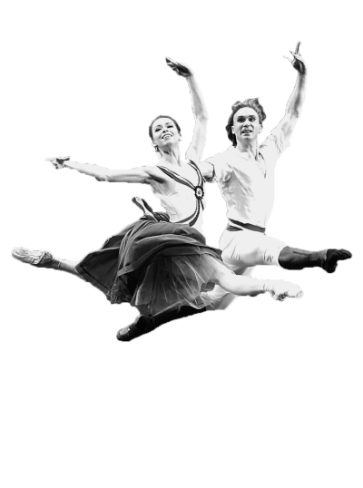 俄罗斯芭蕾舞演员叶卡特琳娜·科里萨诺娃(左),米盖尔·罗布金(右)在表演双人舞《巴黎的火焰》。王小京摄