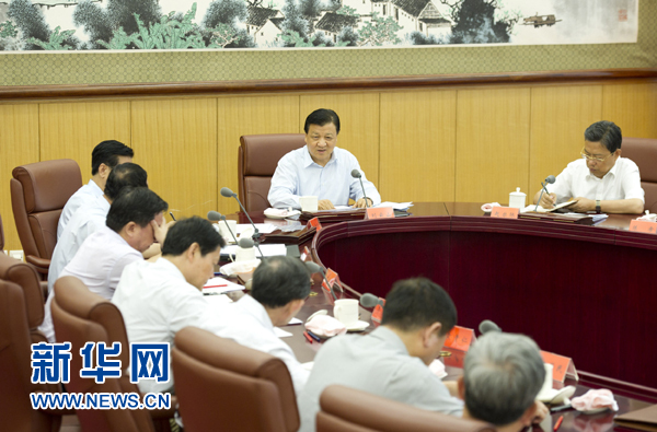 8月14日,中共中央政治局常委、中央党的群众路线教育实践活动领导小组组长刘云山在北京主持召开中央党的群众路线教育实践活动领导小组第三次会议。新华社记者黄敬文摄
