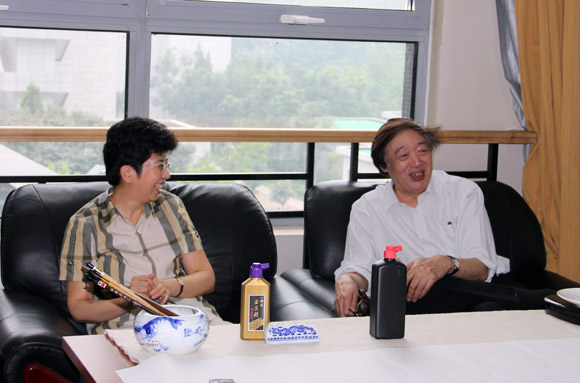 图为赵实(左)与冯骥才亲切交流。中国艺术报 乔燕冰 摄