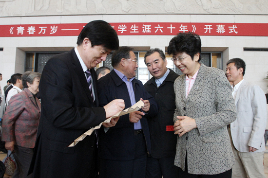 9月27日,由文化部、中国作协、国务院参事室、中央文史研究馆主办,中国国家博物馆承办的“青春万岁——王蒙文学生涯六十年”展在中国国家博物馆开幕。图为著名舞蹈表演艺术家陈爱莲观看展览。中国文艺网 黄远 摄
