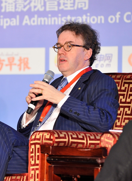 10月18日第十五届上海国际艺术节盛大开幕。本届艺术节的主旨论坛是“包容、 开放与创新——尊重文化多样性,促进文化间对话”,图为爱丁堡国际艺术节总监乔纳森•尼尔斯做主旨演讲。中国文艺网张悦摄