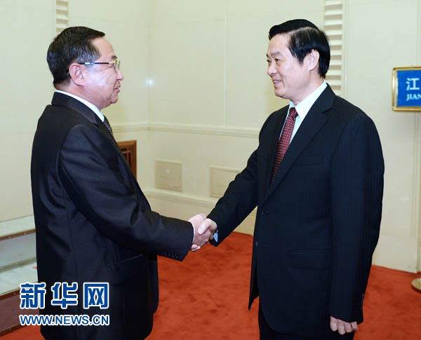 11月1日,中共中央政治局委员、中宣部部长刘奇葆在北京人民大会堂会见由副总编辑金元锡率领的朝鲜劳动新闻代表团。 新华社记者 李涛 摄