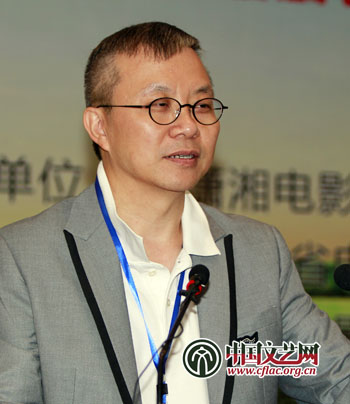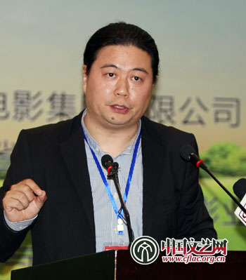 图为潇湘动漫文化有限公司编剧李涛发言,“中国的功夫、熊猫,产生了美国的《功夫熊猫》,这不是中国故事,是‘香蕉’故事。”中国文艺网 张志勇 摄