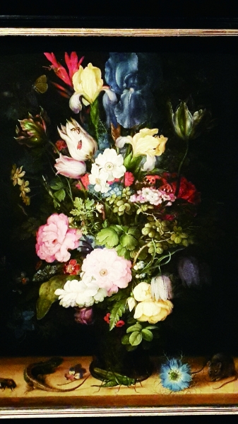 除鲁本斯与凡·戴克作品外,展览中还展示了佛兰德斯画派多位较有影响的艺术家的作品。如:小弗兰斯·弗兰肯创作铜版画《战胜西拿基立》,作品描绘了耶和华的使者拯救耶路撒冷的场景,场面激烈,叙事生动,以橄榄色、绿色和蓝色为基本色调,搭配玫瑰色、黄色和白色突出重点,是弗兰肯在早期创作中的鲜明特征。罗兰特·萨弗里创作于1612年的静物画《一束鲜花:列支敦士登花束》以对花卉的精确描绘著称,画面布局对称,构图精细,使用黑色背景作为花束的陪衬,繁茂的花束里包含有来自各个地方和各个季节的花朵,其中最引人注目的鸢尾花,因为其花瓣的特殊排列,被视为神圣威严的象征,也是圣三位一体的象征。除了这些宗教内涵之外,仅能维持数日美丽的切花,则代表了生命的易逝。桌面上的蜥蜴、老鼠等动物会对植物生长产生危害,因而也代表了美的稍纵即逝。所以,在佛兰德斯画派中,静物画不仅仅是艺术作品,还是哲学精神符号化的隐喻。