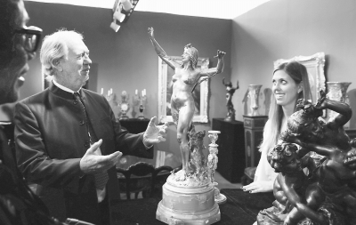 11月15日,来自美国加州的约翰-杜根在北京农业展览馆向观众介绍他参展的艺术品。当日,由北京市文物局等单位主办的“2013北京·中国文物国际博览会”在北京农业展览馆举行。此次展会汇集了鼻烟壶、瓷器、珐琅、杂项等7大门类的众多器物。吸引了来自美国、加拿大、苏格兰等国家和地区的140余家企业及个人参展。 本报记者 郭俊锋摄