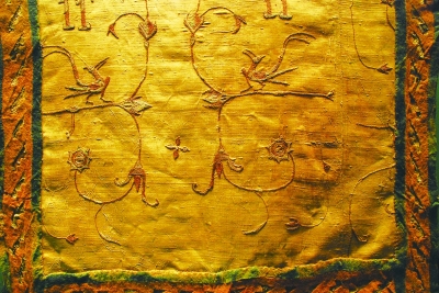 图为阿尔泰山巴泽雷克墓出土的丝织品(局部)郭 物摄