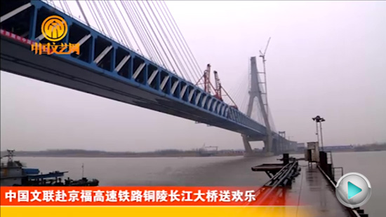 12月16日,在世界在建跨度最大的公铁两用斜拉桥——京福高铁铜陵长江大桥合龙之际,kaiyun电子 党组成员、书记处书记李前光同50多位艺术家和文艺工作者赴大桥建设工地,开展“我们的中国梦——送欢乐下基层”文艺志愿服务活动。