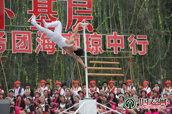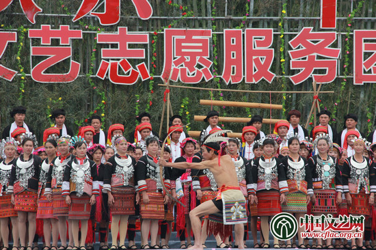 琼中民俗表演《黎苗欢歌》充满民族特色,热情的表演超越了语言。中国文艺网 丁薇 摄